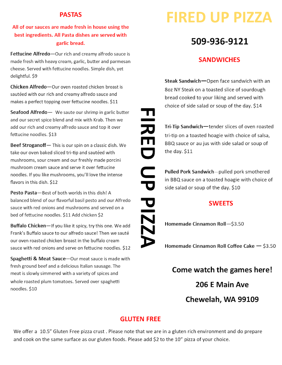 Brick oven roasted tri-tip and fresh seasoned mushrooms topped with blue cheese crumbles with our homemade porcini mushroom cream sauce.